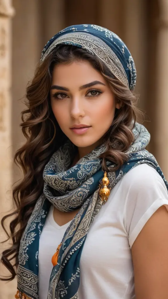 Beautiful young woman with brownImage promptCopyBeautiful young woman with brown eyes and a confident look with curly hair, wearing a scarf on her head and intricately decorated Arabic jewelry, looking confidently, wearing soft makeup and focusing on her eyes Aspect ratioPortrait Model used SDXL Width576 Height1024 Created at02/11/2024 App used Image Generator Download full resolutionEdit imageGenerate similar image1