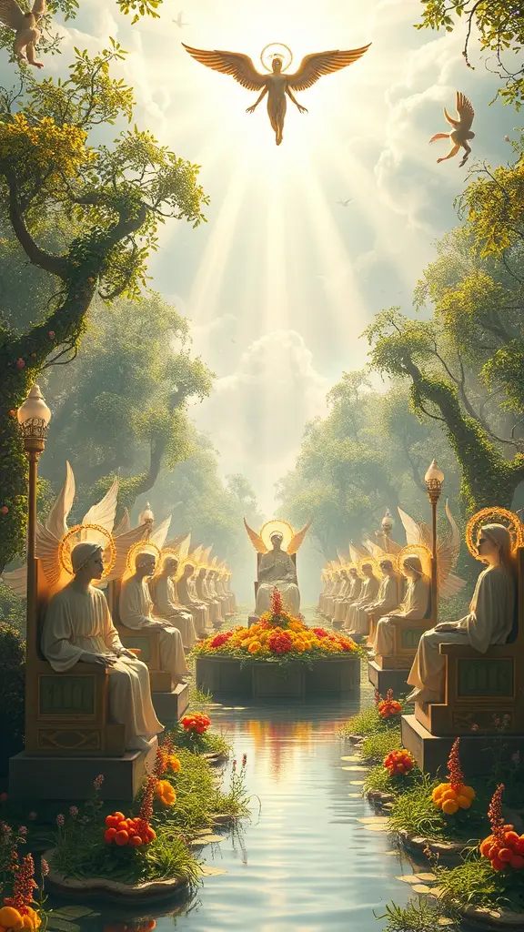 The Garden of Souls: AImage promptCopyThe Garden of Souls: A beautiful, serene garden filled with the righteous souls. Each soul is depicted as a figure of light, seated on thrones of gold, enjoying the fruits of paradise and the company of angels. Aspect ratioPortrait Model used Flux Fast Width576 Height1024 Created at18/10/2024 App used Image Generator Download full resolutionEdit imageGenerate similar image0