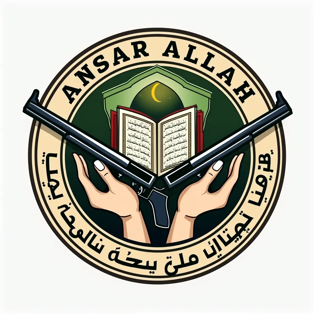 Logo including Holy Quran, GunsImage promptCopyLogo including Holy Quran, Guns and text" Ansar Allah" and the handouts Aspect ratioSquare Model used Flux Dev Width1024 Height1024 Created at28/10/2024 App used Image Generator Download full resolutionEdit imageGenerate similar image0
