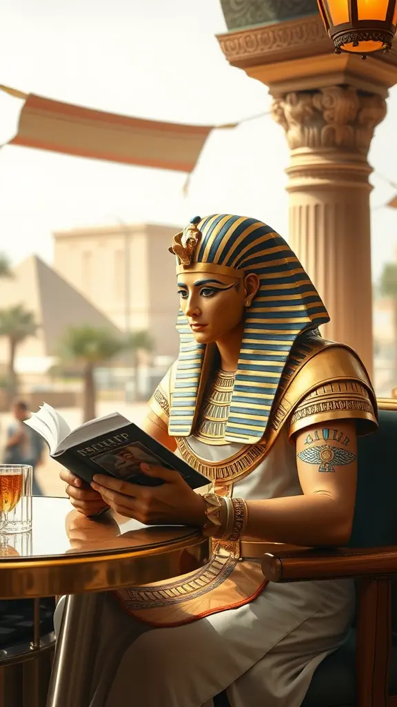 egyptian pharaoh sitting in aImage promptCopyegyptian pharaoh sitting in a cafe in egypt and reading a book Aspect ratioPortrait Model used Flux Fast Width576 Height1024 Created at08/09/2024 App used Image Generator Download full resolutionEdit imageGenerate similar image0