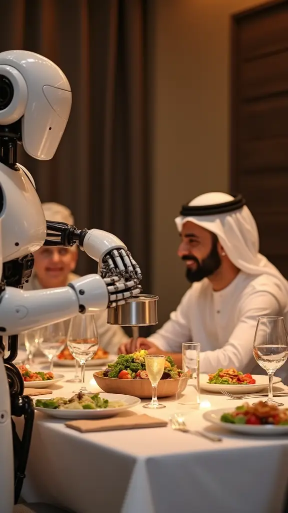 a robot pouring water intoImage promptCopya robot pouring water into glasses on the dinner table while an Emirati family around the dinner table Aspect ratioPortrait Model used Flux Dev Width576 Height1024 Created at30/10/2024 App used Image Generator Download full resolutionEdit imageGenerate similar image0