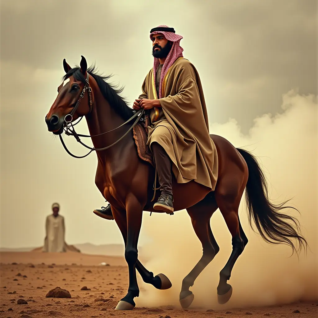 A man riding a horseImage promptCopyA man riding a horse in an Arab costume. The background is the name Omar, the picture is in Harb, and he carries a curse word and a dead background Aspect ratioSquare Model used Flux Dev Width1024 Height1024 Created at07/09/2024 App used Image Generator Download full resolutionEdit imageGenerate similar image0