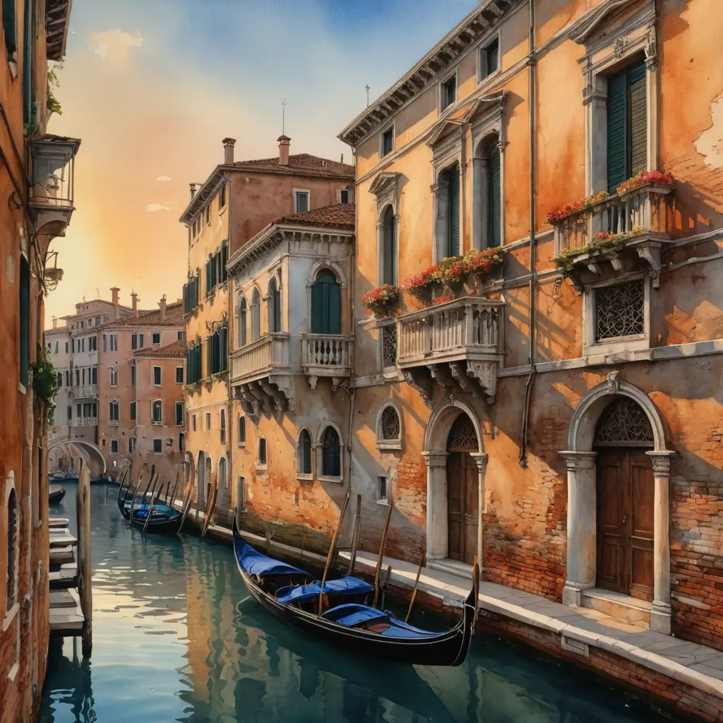 Venetian elegance: Italian architecture. Watercolor. Vintage print, watercolor, artstation trends, sharp focus, studio photography, intricate details, high detail, professional composition, golden hour, Greg Rutkowski, Da Vinci
