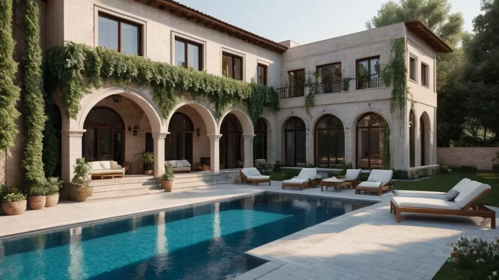 طراحی نمای ویلا ، سبکImage promptCopyطراحی نمای ویلا ، سبک ایرانی ، استفاده از رنگ سفید و سورمه ای،درختان بلند ، نور خورشید ، فصل تابستان ، پنجره های بزرگ ، استفاده از آجر در نما ، استخر دار ، استفاده بسیار زیاد از گل و گیاه در دیوار ها و تراس ، نور پردازی ، طاق نما Aspect ratioLandscape Model used SDXL Width1024 Height576 Created at25/09/2024 App used Image Generator Download full resolutionEdit imageGenerate similar image0