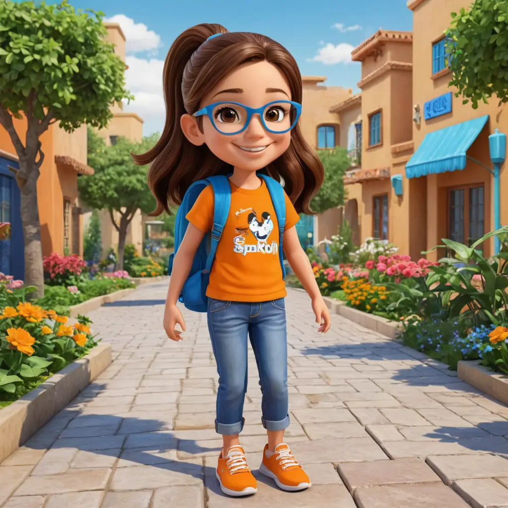 Smily little girl ,brown hairImage promptCopySmily little girl ,brown hair one pony tail style, tan skin ,hazel sparking eyes with eye glasses, 6 years old, orange shirt ,blue long jeans, orange shoes, blue backpack, garden background, Saudi arabia, cartoon 3d ,cute ,Riyadh city Aspect ratioSquare Model used SDXL Width1024 Height1024 Created at03/10/2024 App used Image Generator Download full resolutionEdit imageGenerate similar image0