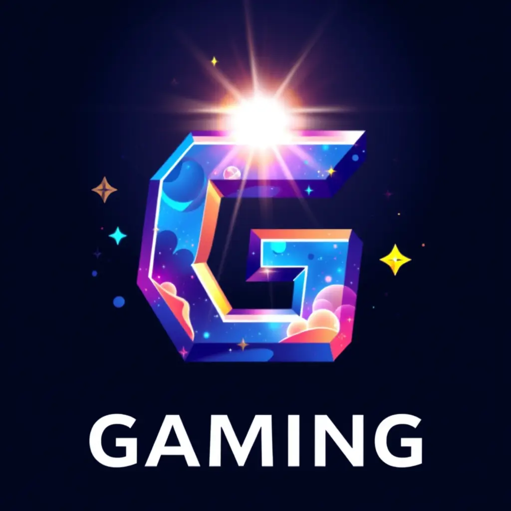 شعار جميل لشركة ألعاب، حرف G مع تأثيرات مجرة، بأسلوب فني حيوي يشبه ألعاب البكسل