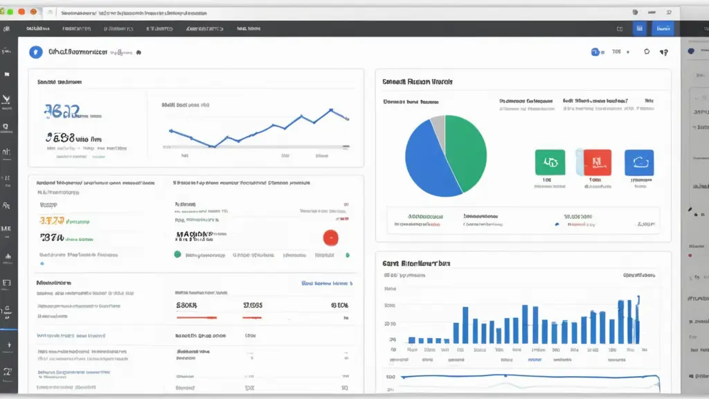 E-Commerce Marketing Automation Dashboard This image can depict a detailed dashboard interface showing analytics for an e-commerce store. The dashboard should display key metrics like "Email Campaign Performance," "Customer Segmentation," "Cart Abandonment Rate," and "Revenue Growth." You could show graphs, charts, and stats reflecting the success of email campaigns or paid ads on Google. The interface should have elements like user profiles, recent purchases, automated workflows, and email open rates.