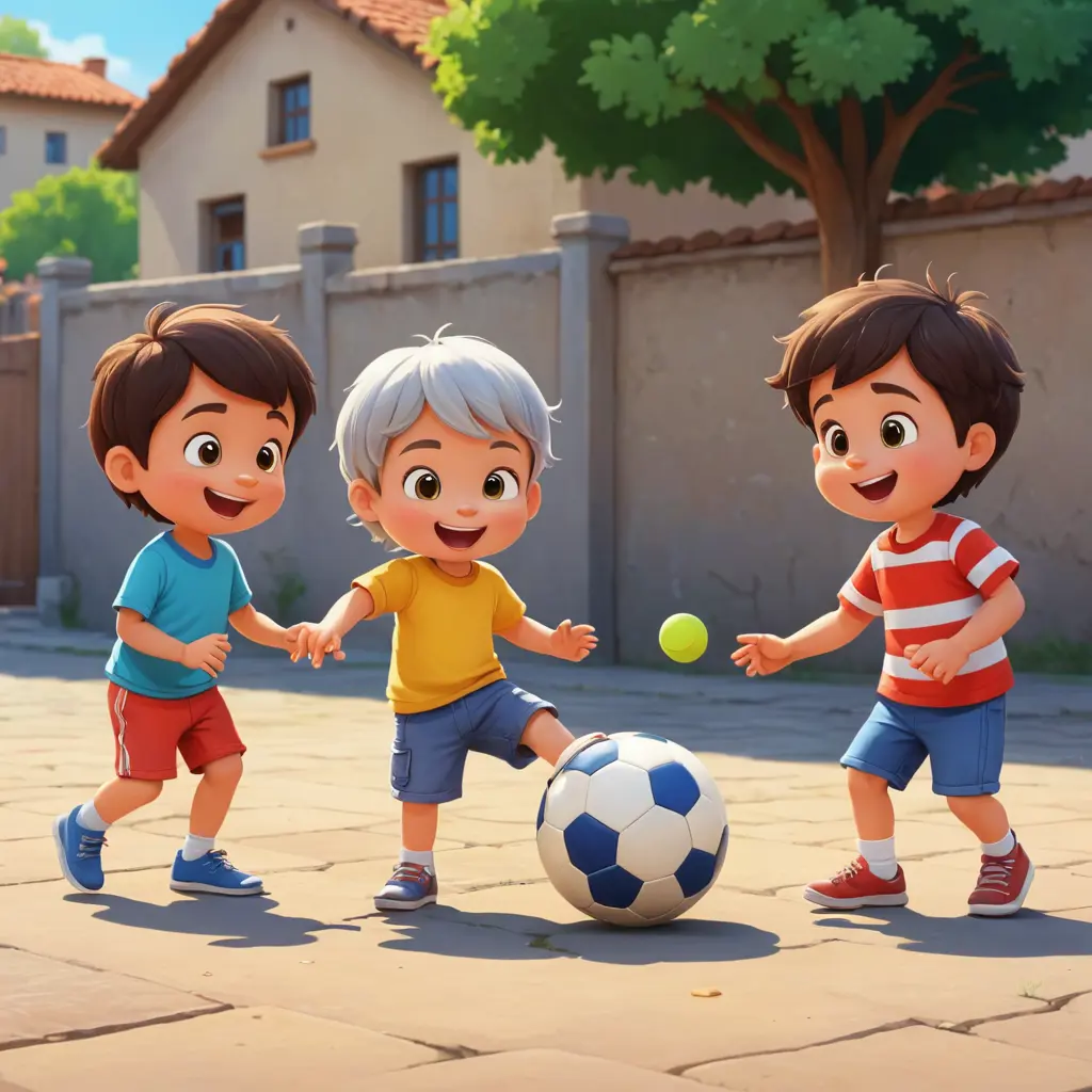طفل يلعب مع اصدقائه بالكرة كرتوني