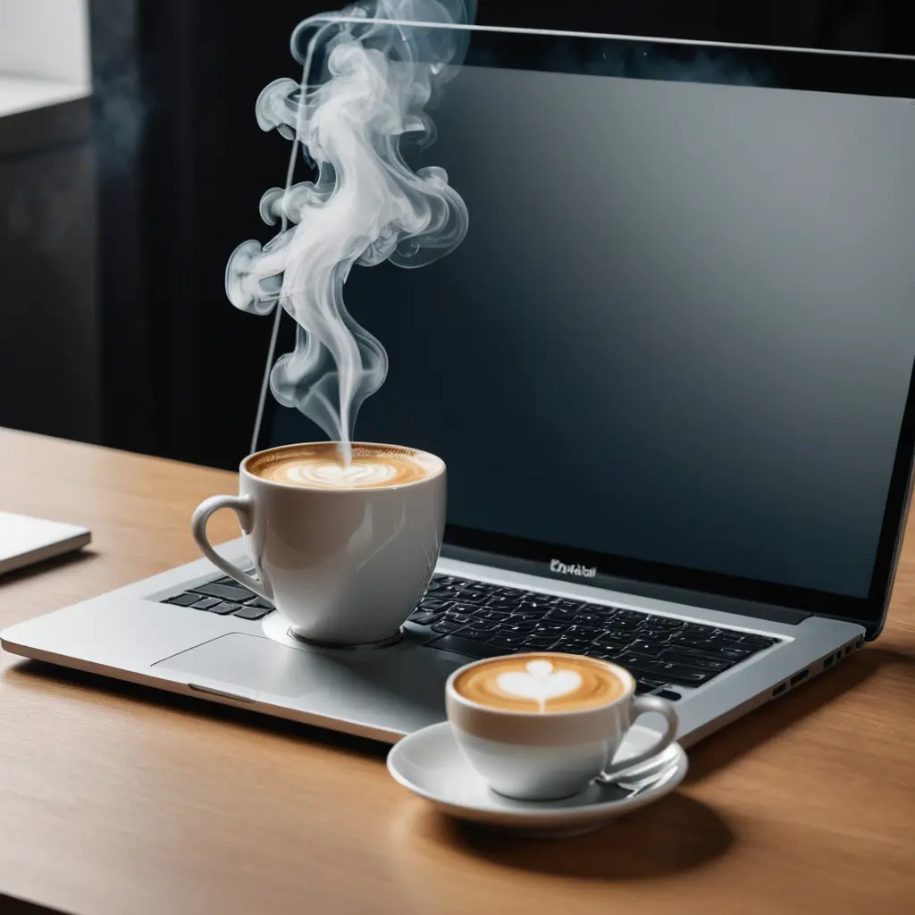 إنشاء صورة لابتوب بجانبه فنجان قهوه يصدر منه دخان
