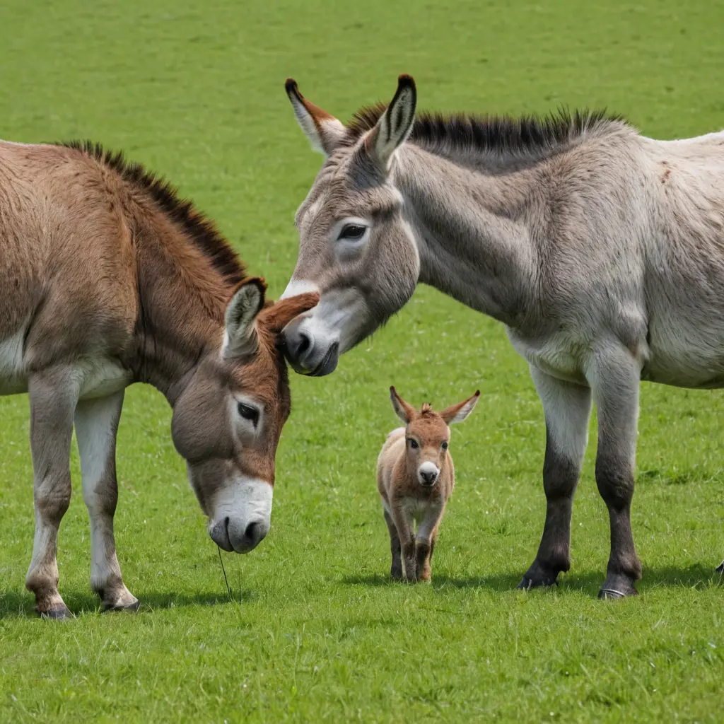 حمار يأكل عشب و بجانبه بقرة منتفخة