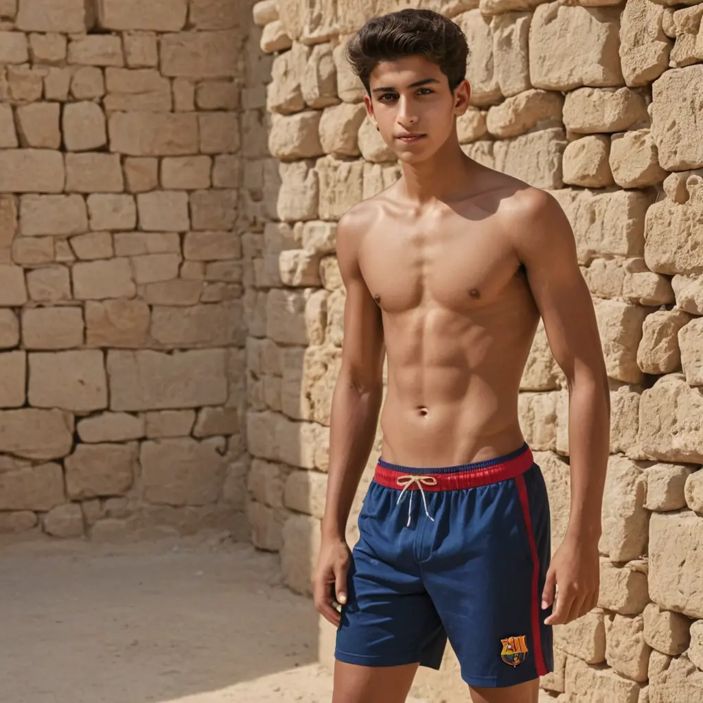ولد بعمر١٤سنة سعودي جميل عضلات البطن يلبس شورت برشلونة من اصل فلسطيني جسم جميل. طويل