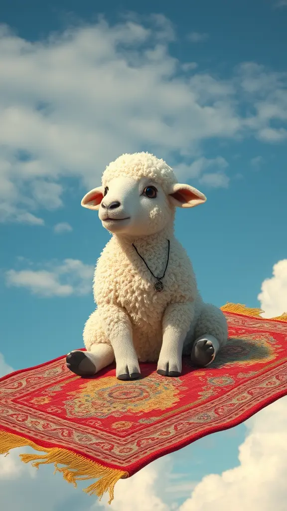 خروف يجلس على السجادة الطائرة في سماء