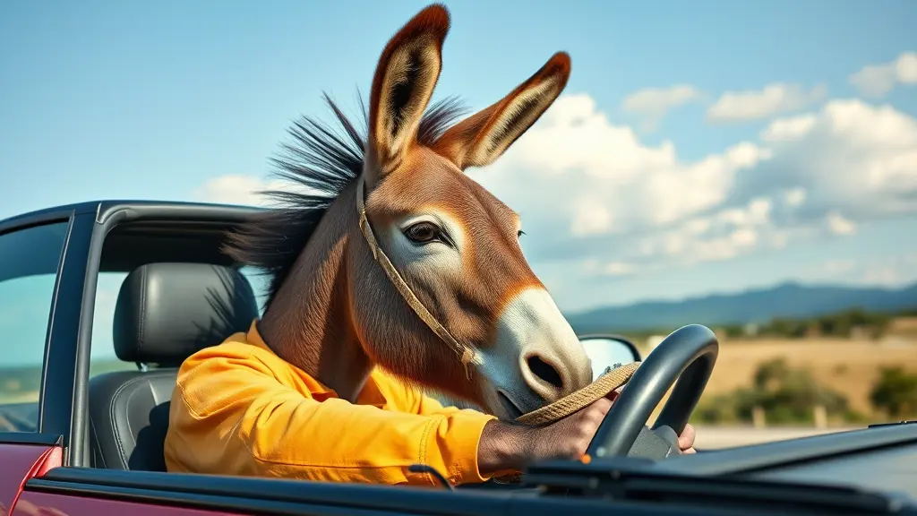 حمار يسوق سياره