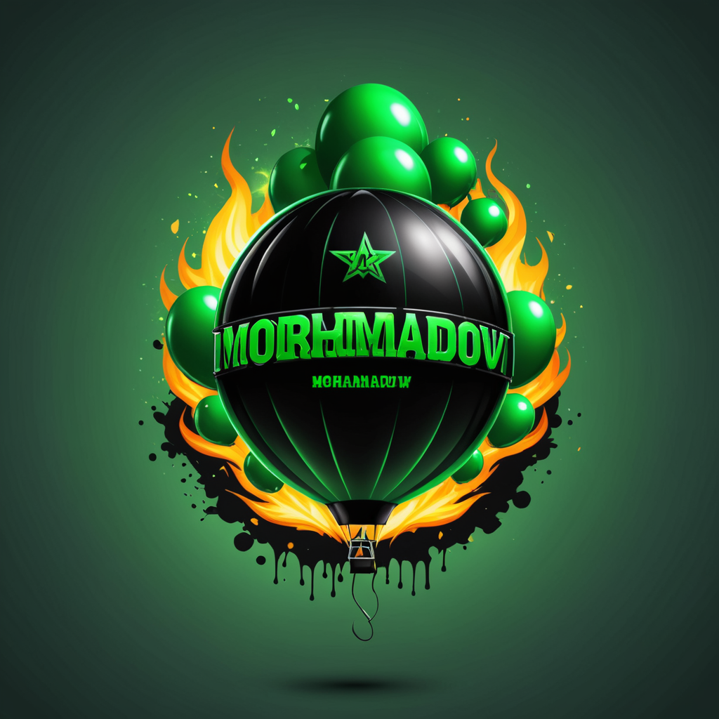 شعار جيمنج بأسم Mohamadov بالون الاخضر و الاسود الامع وتأثيرات نارية ورصاصات و اسلحة