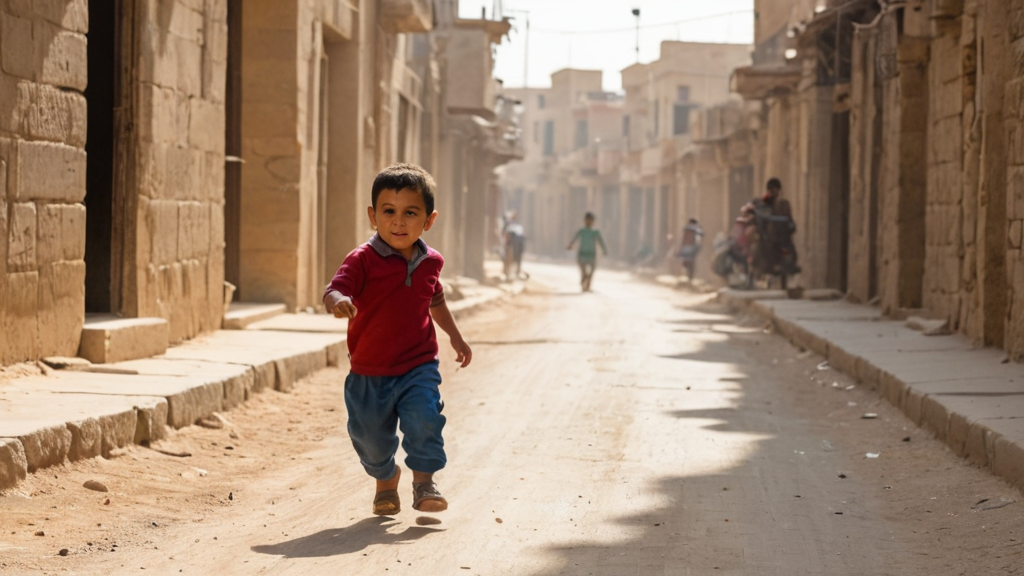 ولد صغير يلعب في الشارع في الريف المصري