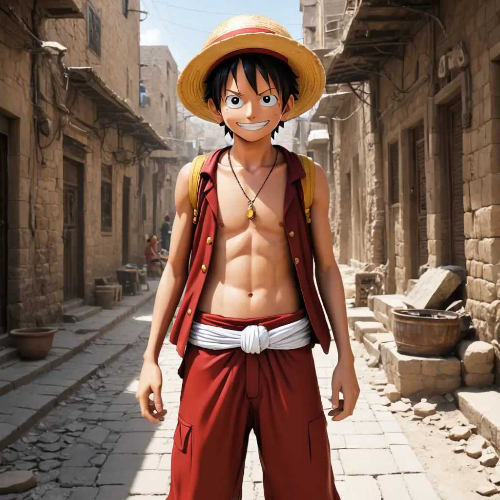شخصية لوفي ون بيس في اليمن صنعاء القديمة