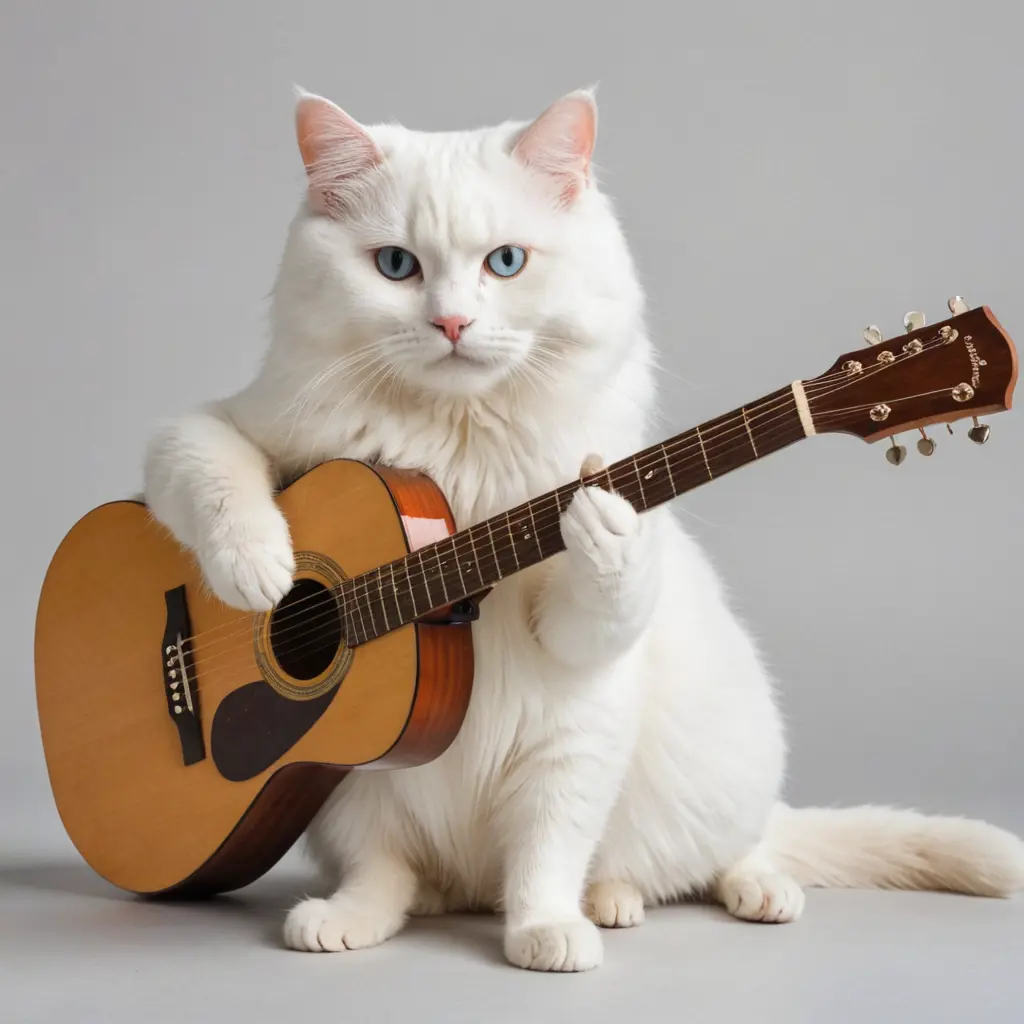 قط ابيض يعزف علا جيتار