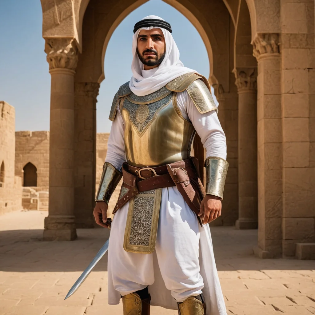 فارس عربي شجاع و قوي من العصر القديم باللباس عربي قديم
