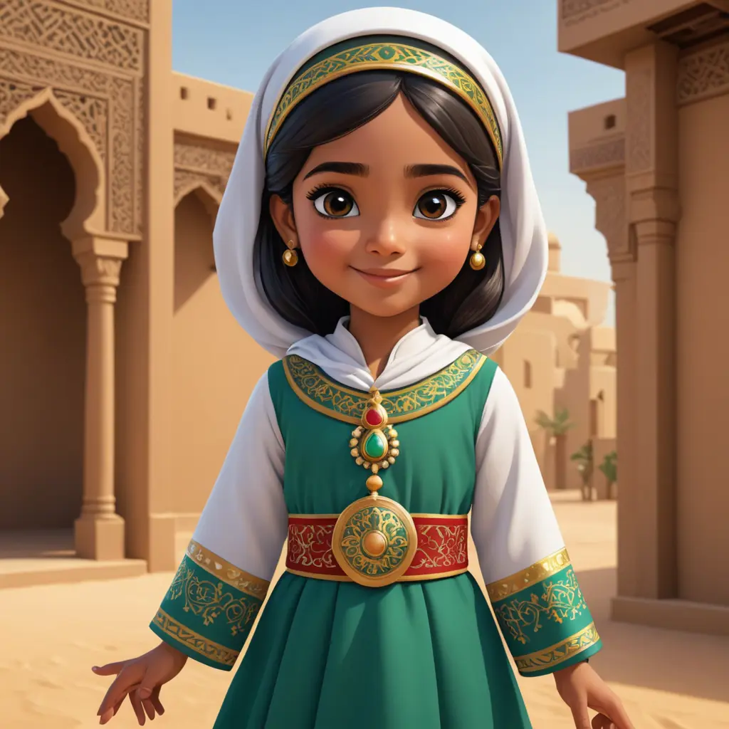 صورة كارتونية لطفلة من شبه الجزيرة العربية تلبس الزي الشعبي