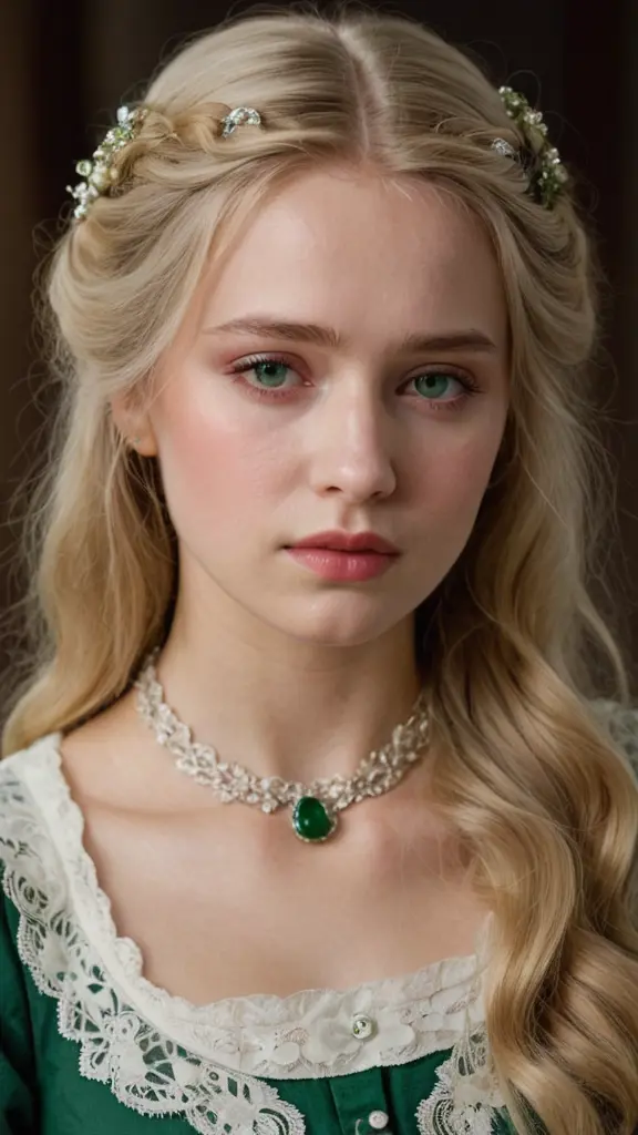 فتاة جميلة جدا شقراء حزينه جدا وتبكي عيونها خضراء من العصر الفيكتوري