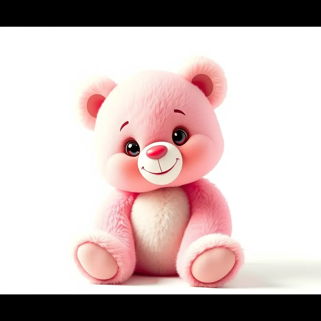 دب وردي لطيف، يبتسم ابتسامة صغيرة مرحة، يجلس على خلفية بيضاء نقية. يتميز بفرو ناعم ورقيق، وعينين لامعتين فضوليتين. الإضاءة هادئة ودافئة، تُلقي بظلال خفيفة تُضفي عمقًا. يجب أن يكون نمط الصورة أشبه بلوحة رقمية، بتدرجات ألوان سلسة وألوان زاهية، مثالية لخلفية هاتف محمول.