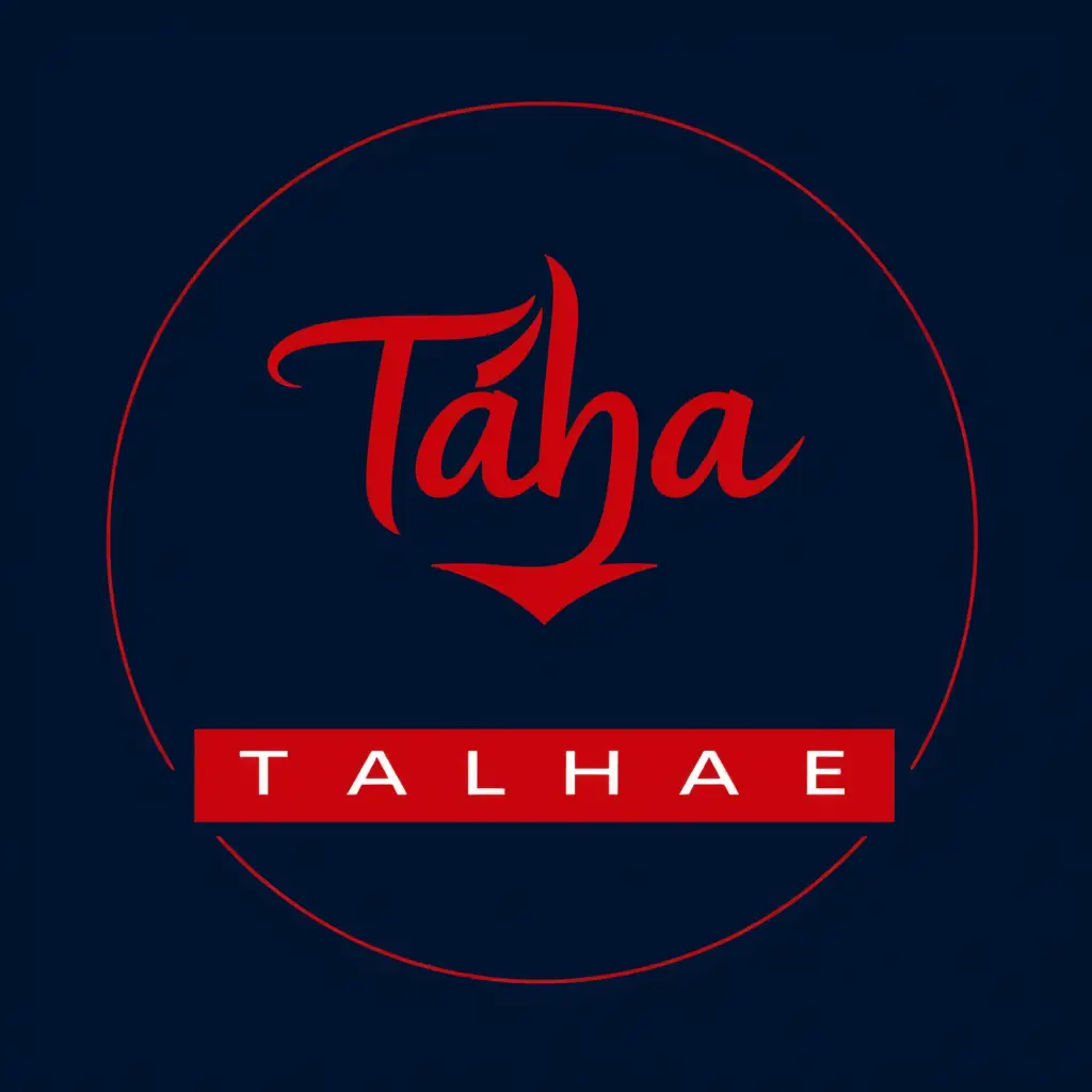 شعار مطعم باسم طه باللون الاحمر و الاكحل