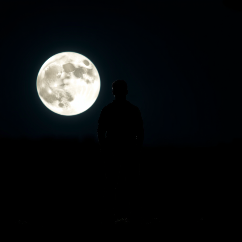 صوره شخص واقف امام القمر مع اضاءه مميزه