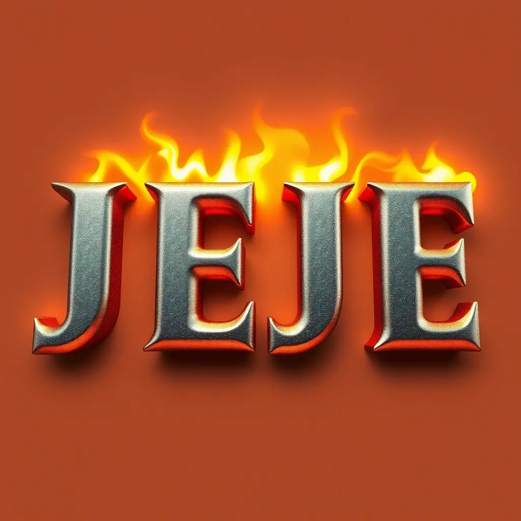 صوره ب اسم JEJE بخط واضح لون معدني ثلاثي الابعاد مع تاثير واقعي  ونار ب اشرطه خفيفه خلف الاسم