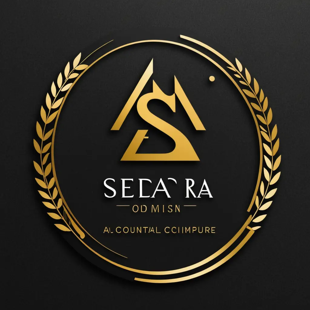 شعار محاسبة بأسم Sedra ، باللون الذهبي اللامع والأسود يعبر عن الأعمال المحاسبية
