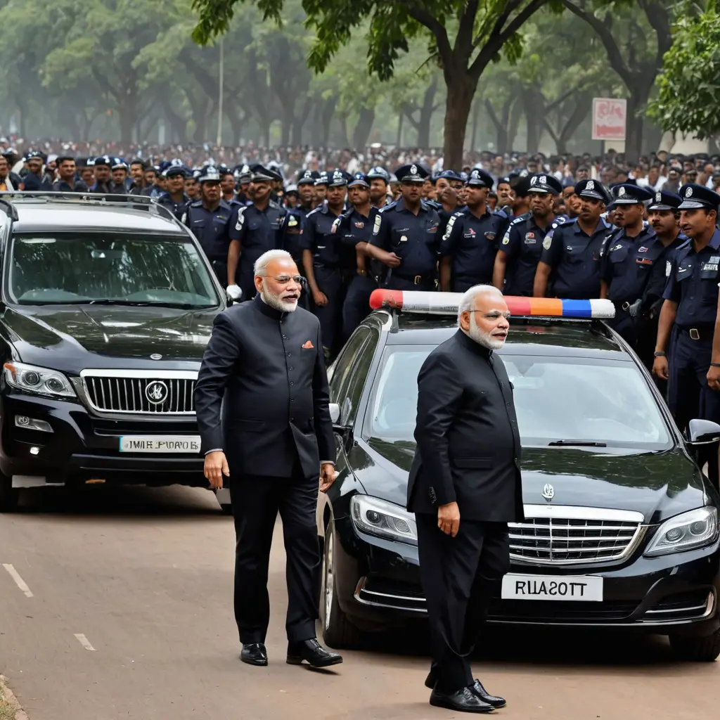 Narendra Modi in black suitImage promptCopyNarendra Modi in black suit near black pm vehicle with police force protecting him Aspect ratioSquare Model used SDXL Width1024 Height1024 Created at26/04/2024 App used Image Generator Download full resolutionEdit imageGenerate similar image0