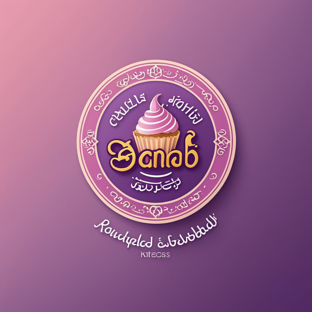 تصميم شعار لمحل حلويات باسم رغد بالعربي و بالاوان الوردي الفاتح و البنفسجي