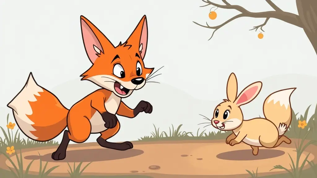 صورة كرتونية لثعلب رأى أرنبًا فهجم عليه و لكنه هرب