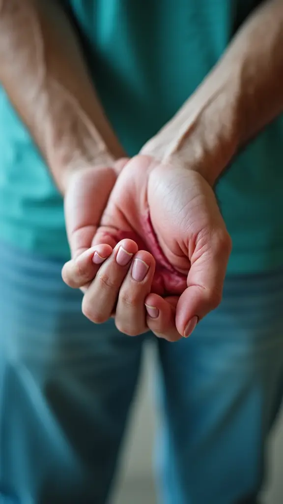 يد شاب مجروحة حقيقية و كانه في المستشفى