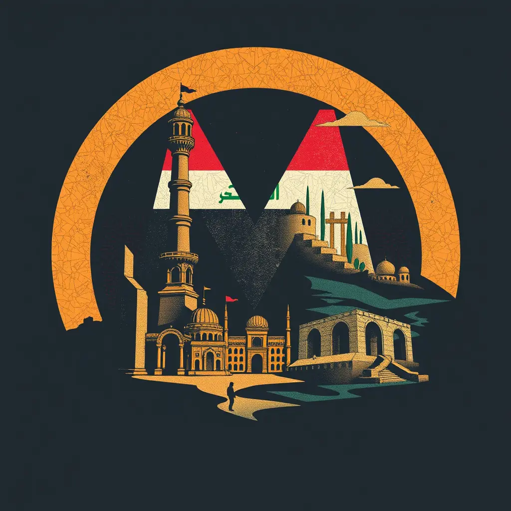 تصميم حرف M معة حضارة العراق ومعالمة التاريخية