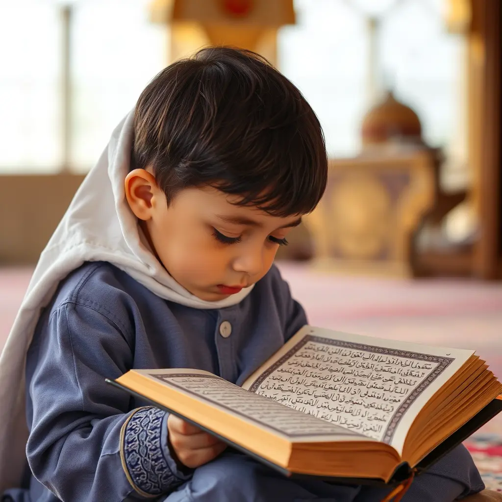 طفل مسلم يقرأ القرآن الكريم الخلفية