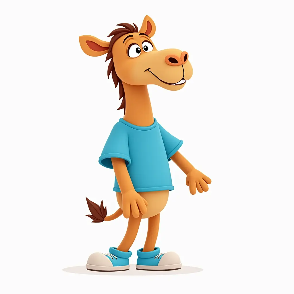 جمل كليب ارت يرتدي تيشرت أزرق وشوت أبيض