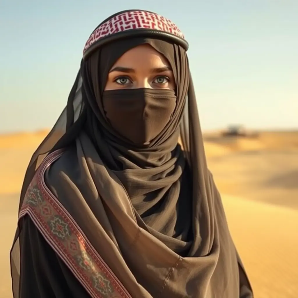 بنت لابسه برقع سعودي و تمسك جميل في الصحراء