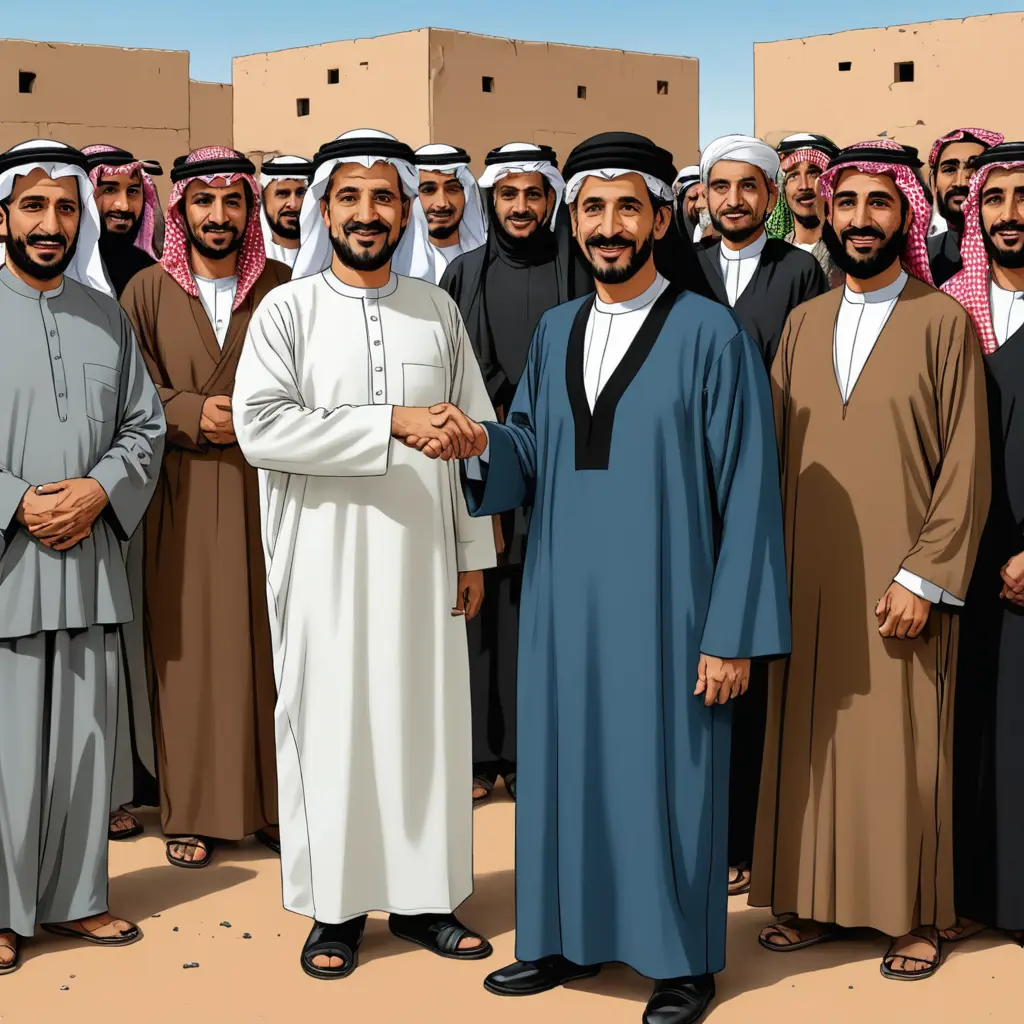 رسم كاريكاتير ساخر وواقعي الانتعاش اقتصادي في وهناك عدد قليل الأشخاص يلبسون لباسا ليبيا وليس خليجيا فرحوني بهذا الانتعاش