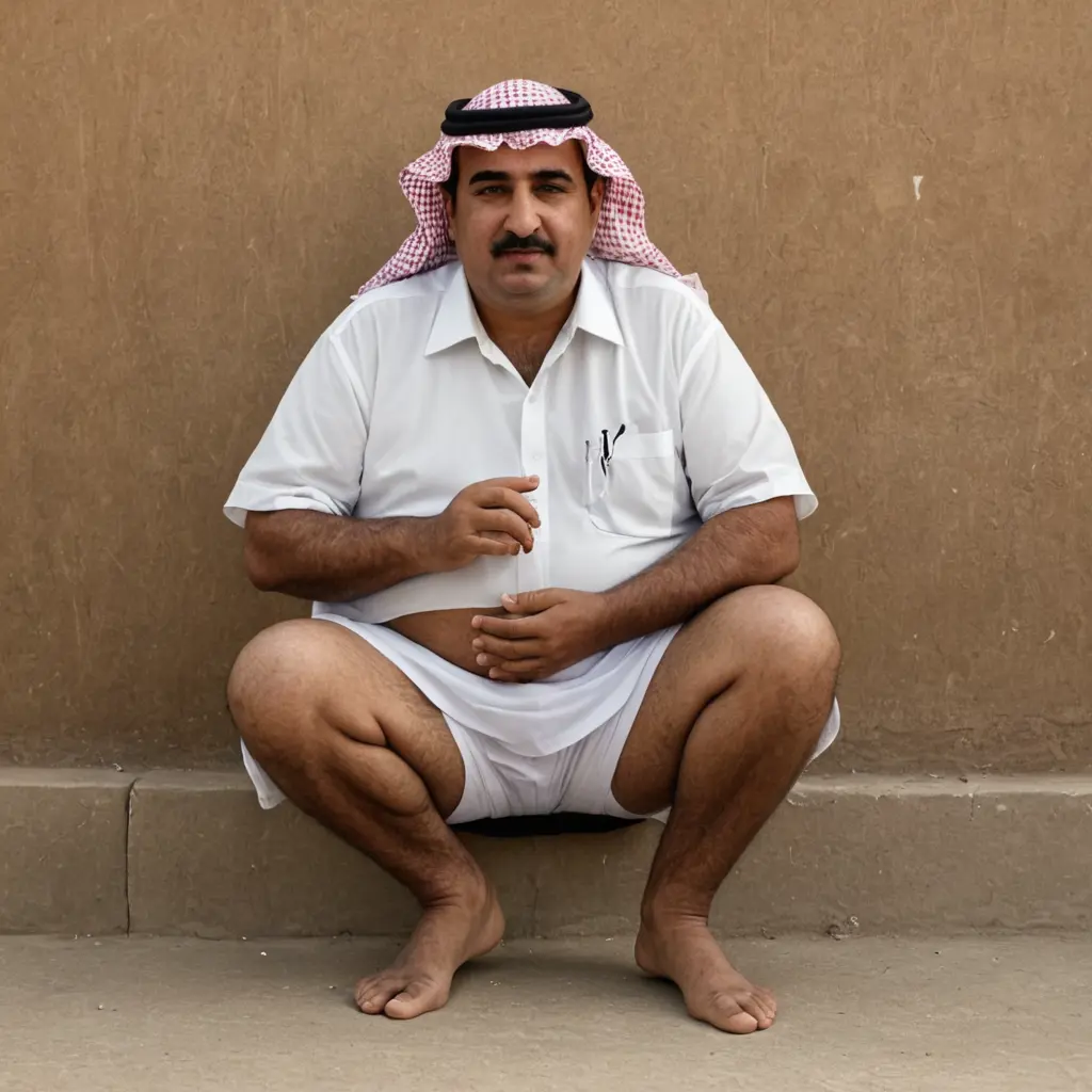 رجل سمين خمسيني سعودي لابس كلسون وقاعد