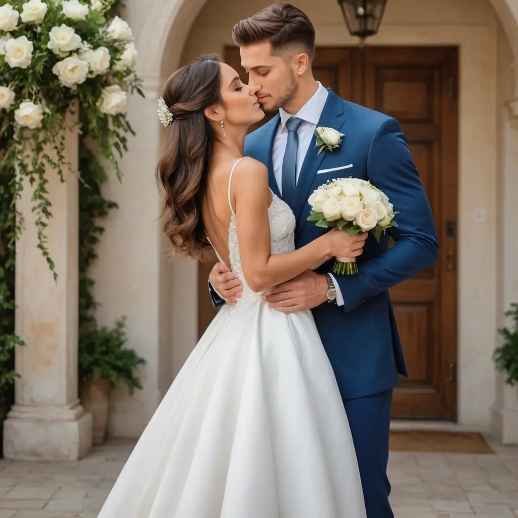 ارسم شاب نحيف يرتدي بدلة عريس يشاهد فتاة جميلة ترتدي فستان زفاف ابيض ويحضتنها شاب بعضلات
