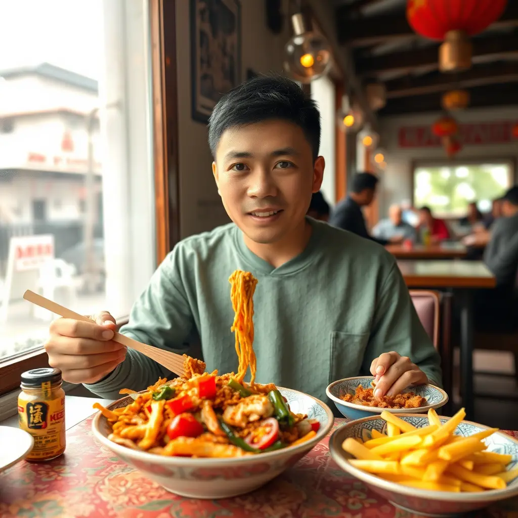 عيزة شب من الصين وهو بياكل الكشري