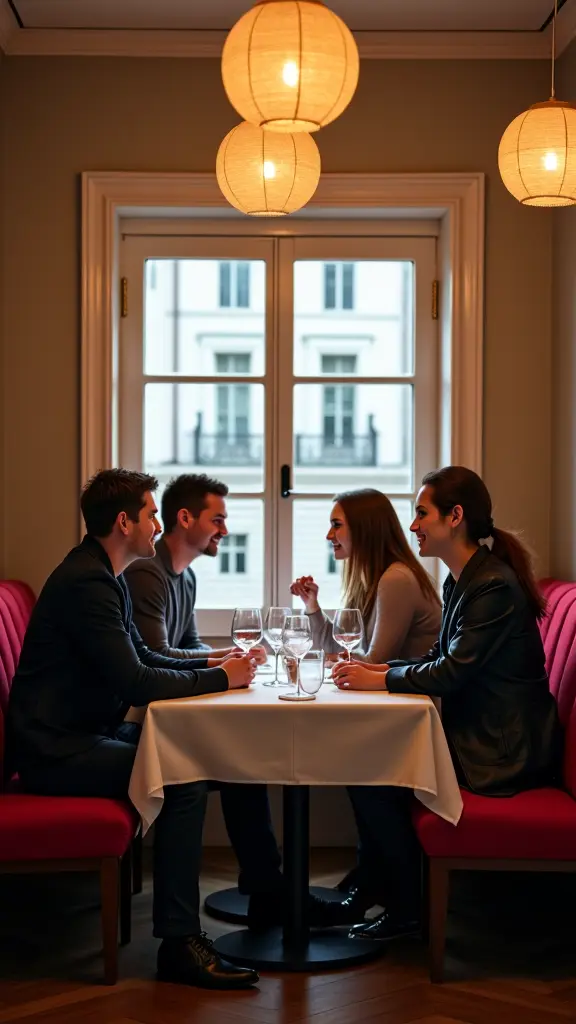 صوره لاربع اصدقاء يجلسون في مطعم فرنسي