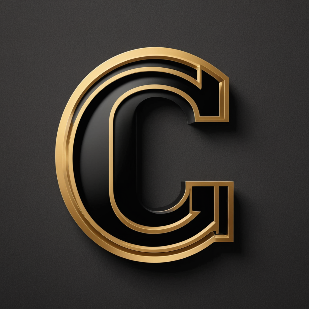 شعار ‏مطبعة إعلانات ضوئية  مع حرف G CNCبألوان الذهبي والأسود المطفي، تصميم عصري وفخم