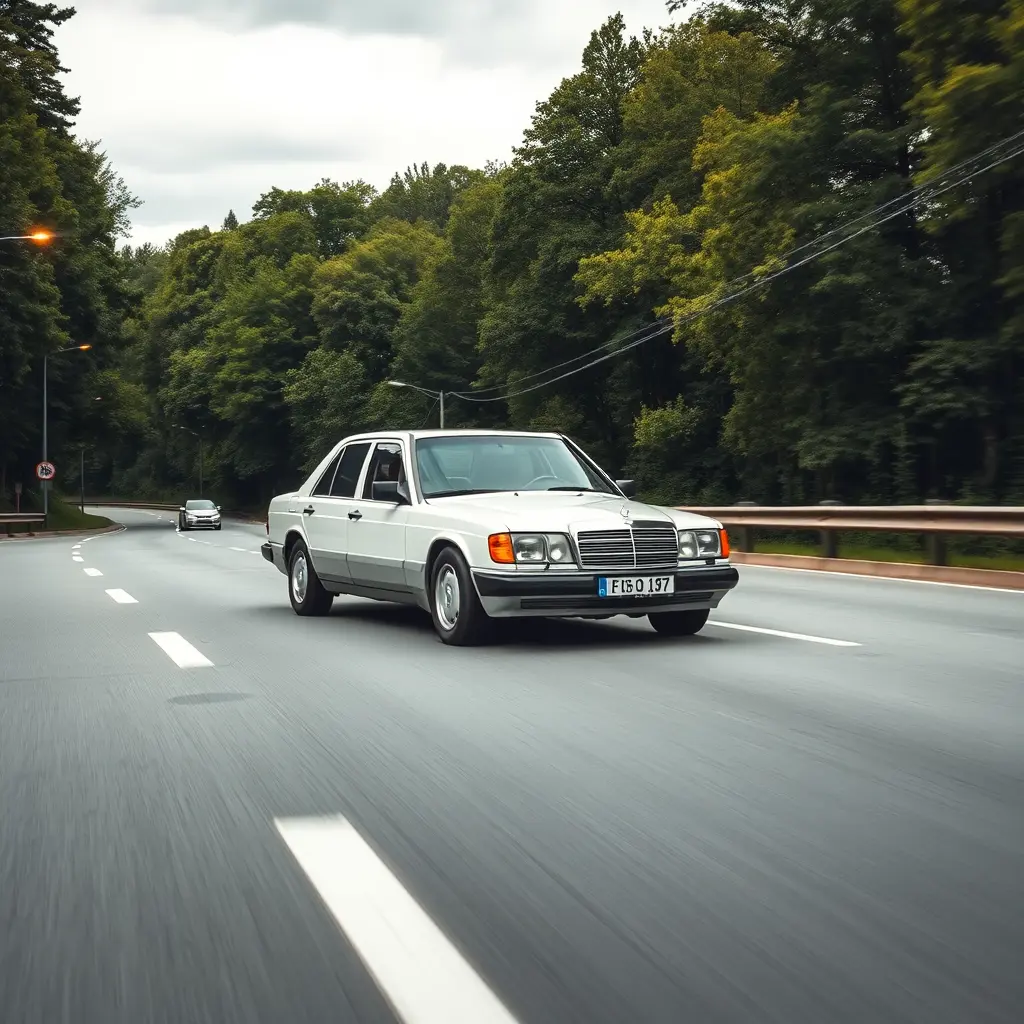 White mercedes w124 facelift on highway