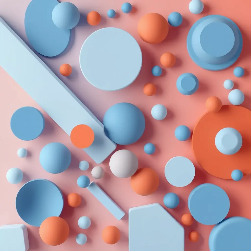 بدي عناصر 3d و أشكال هندسية بلون الازرق الفاتح  واشكال تكون والبرتقالي مع الأحمر في تدريجة واحدة