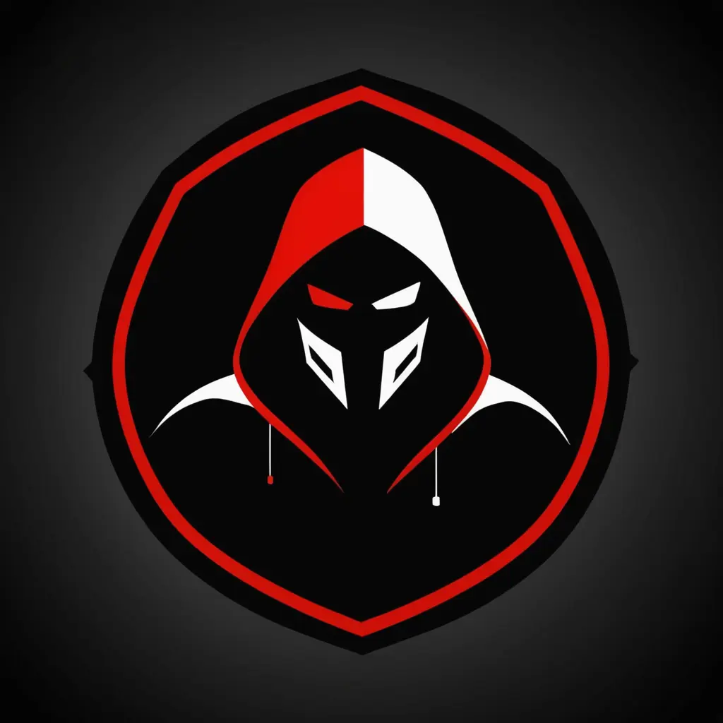 شعار لشخص هكر، شركة اسمها wheeb، أبيض وأسود مع لمسة حمراء