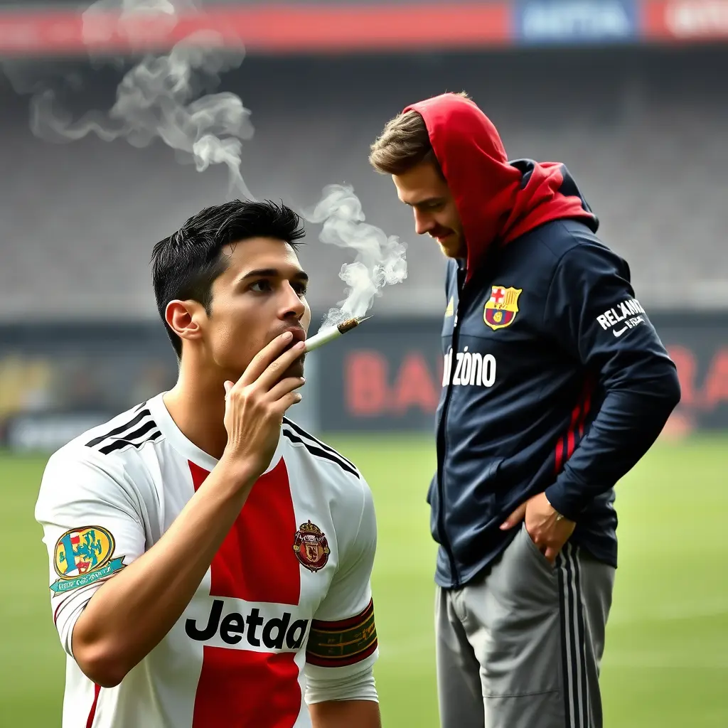 كريستيانو رونالدو يدخن السجائر مع ميسي