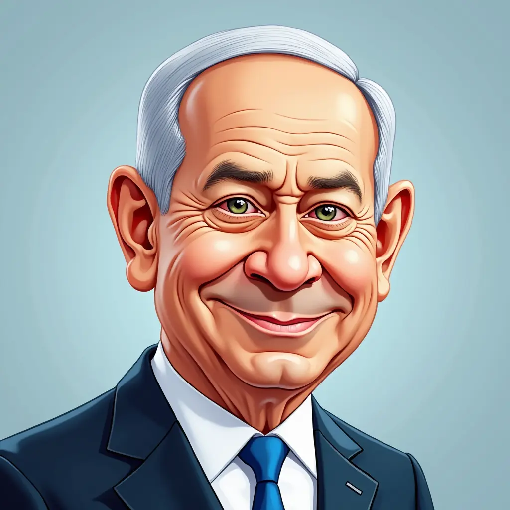 Netanyahu cartoon caricature face . boligan style