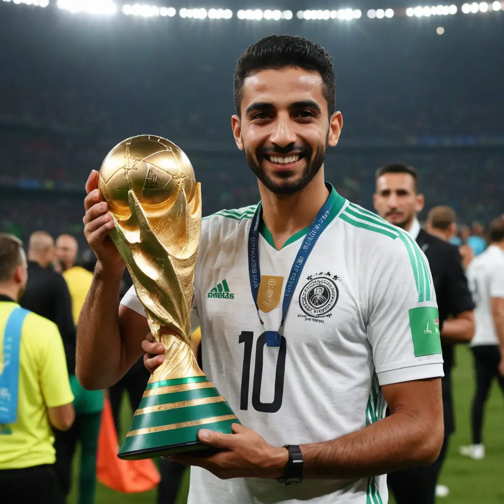 اللاعب ايمن حسين يحمل كأس العالم
