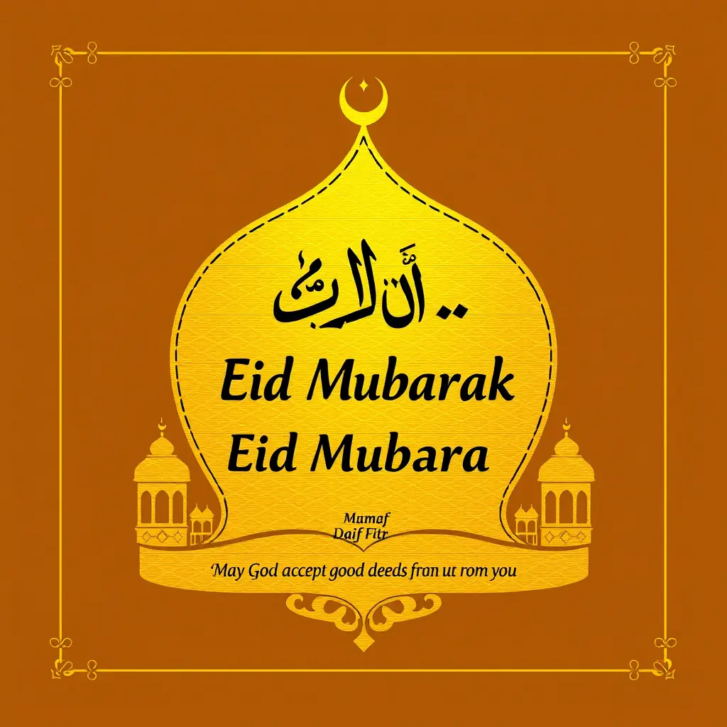 صورة تهنئة عيد الفطر المبارك ذهبية باسم محمد ضيف الله مكتوب فيها عيد مبارك تقبل الله منا ومنكم صالح لأعمال